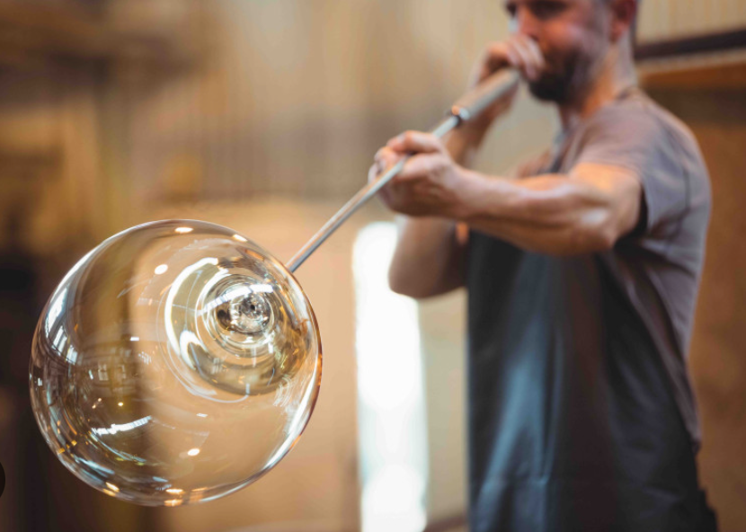 Le verre recyclé provient de verres plats et verres de bouteille refondus dans un four chauffé à plus de 1500° puis placés dans un four de recuite pendant 3 heures. Ils sont coupés de manière artisanale et les débris sont à nouveau recyclés.