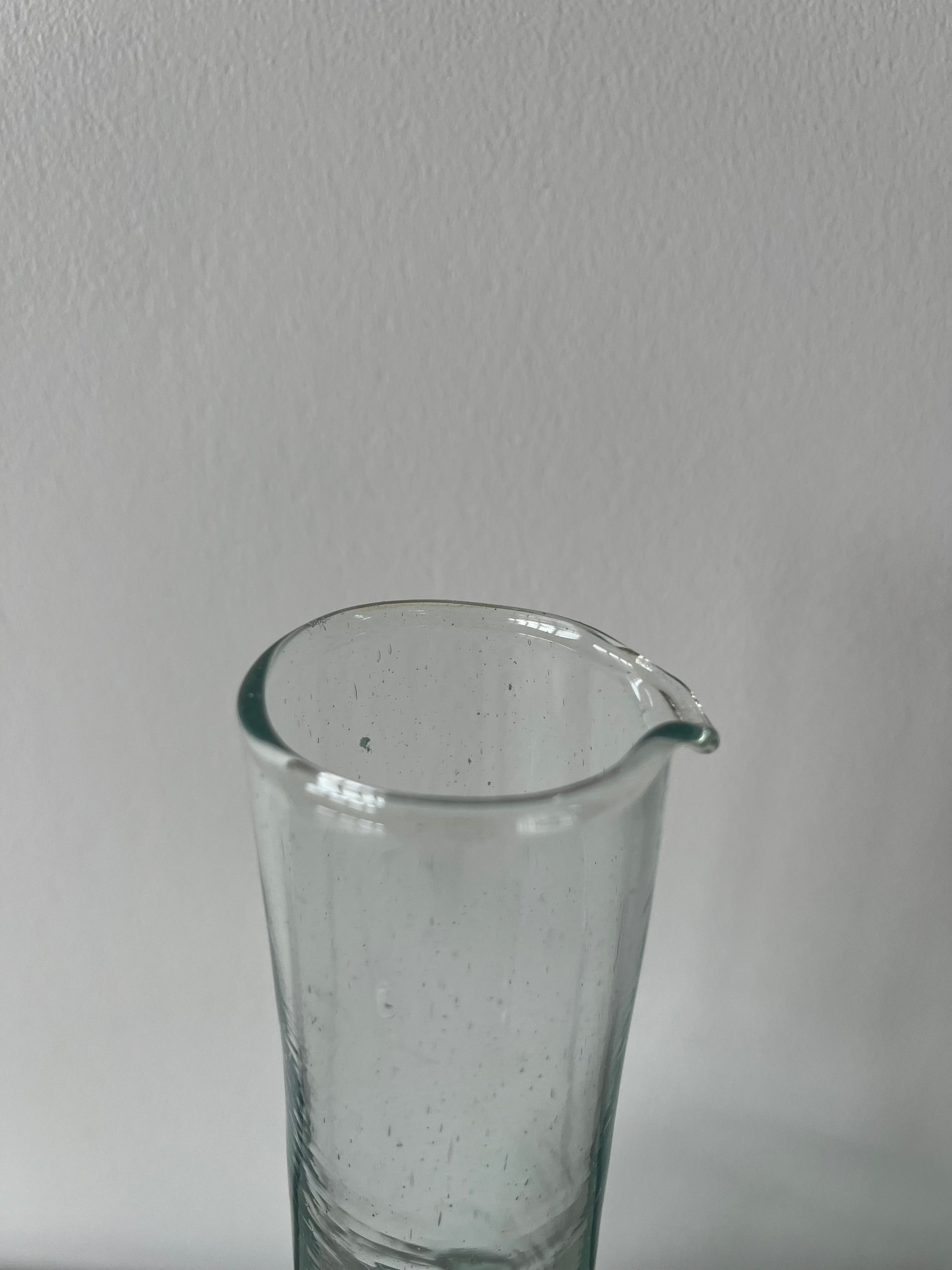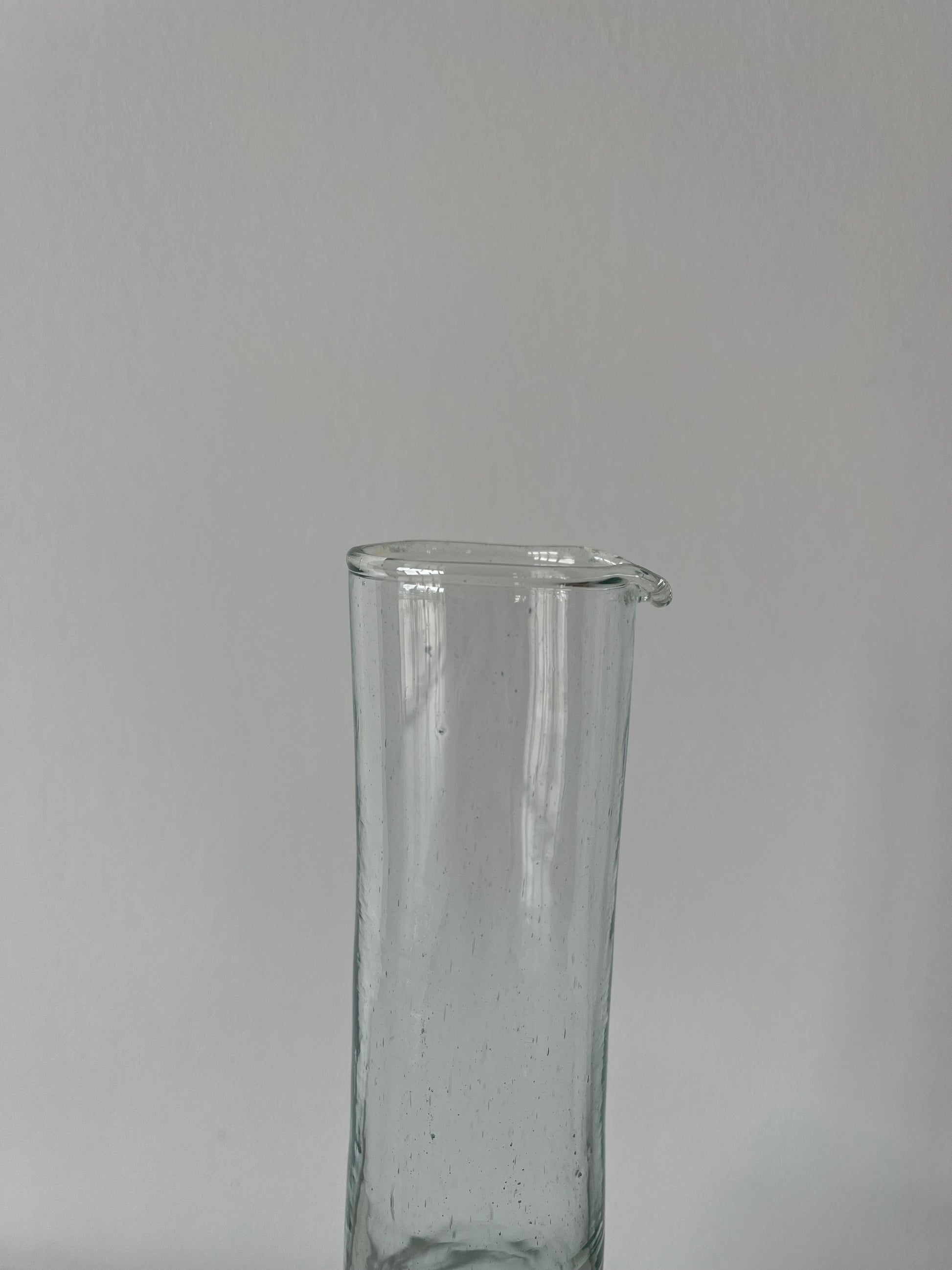 Carafe en verre soufflé à la bouche à partir de verre naturel ou recyclé.