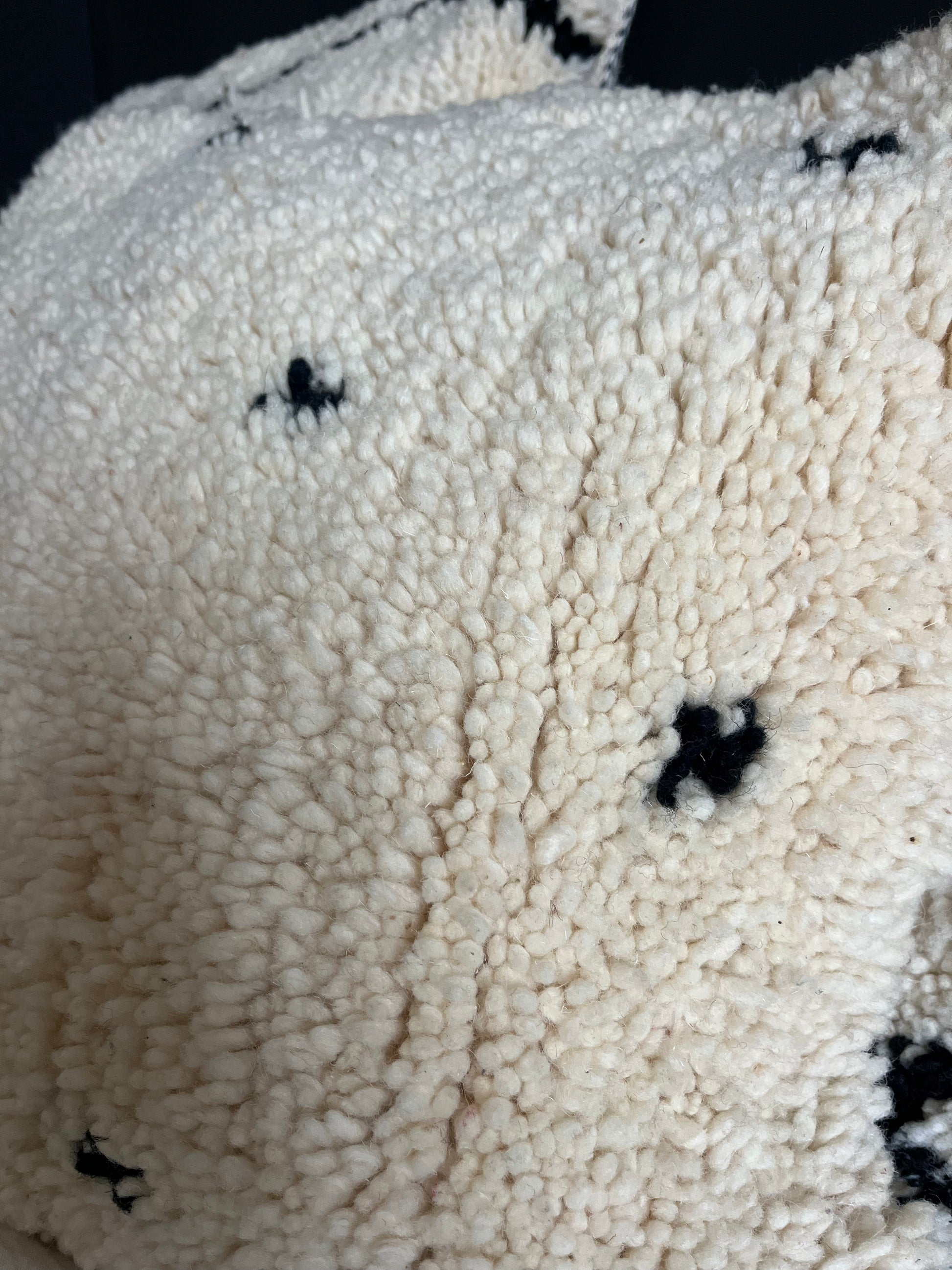 Les coussins en laine Beni Ouarain sont fabriqués à partir de tombée de tapis qui ne peuvent être vendus du fait d'un défaut. Ce sont des pièces tissées par les femmes dans l'Atlas. Chaque pièce est donc unique et fabriquée avec amour !
