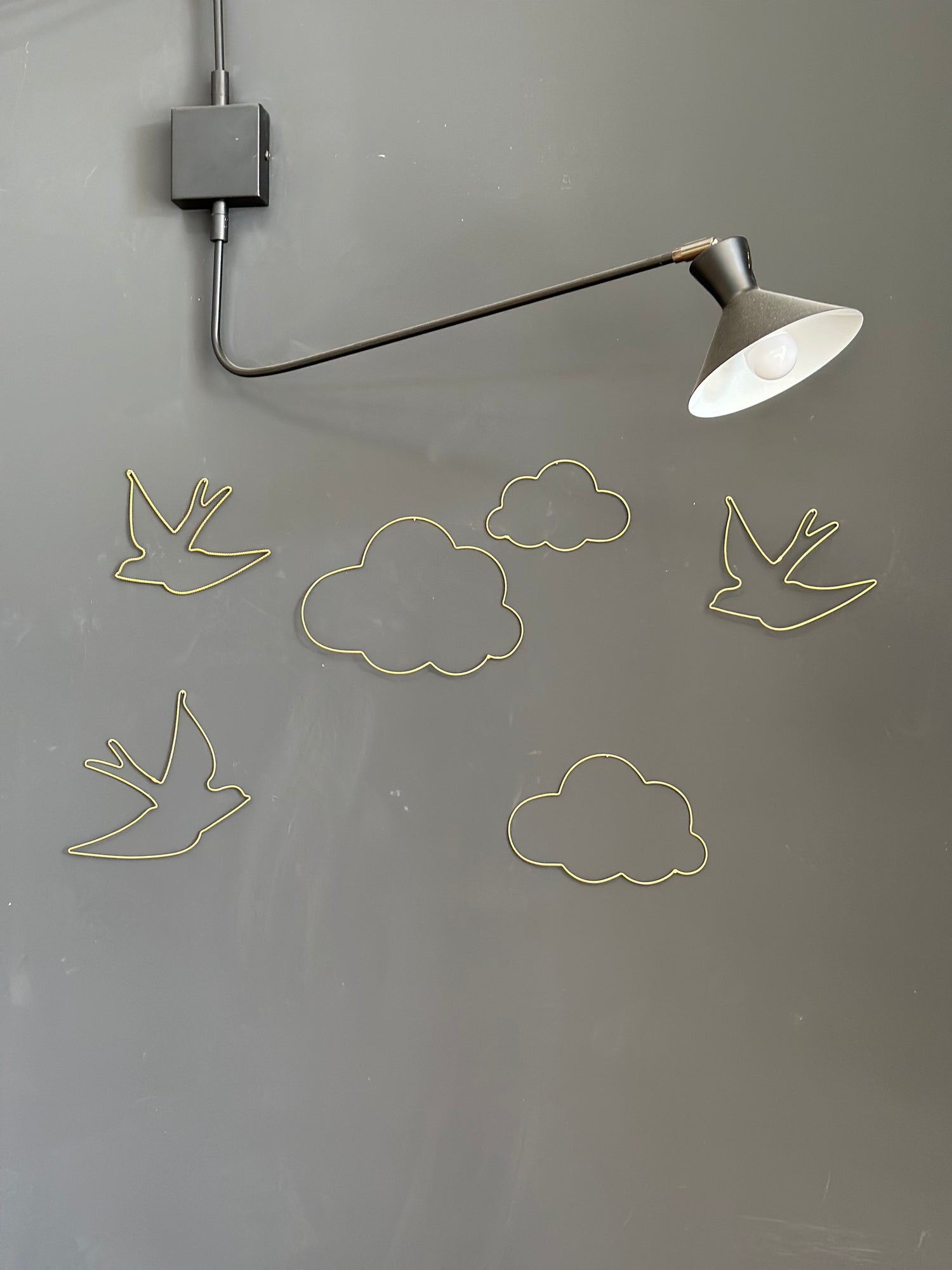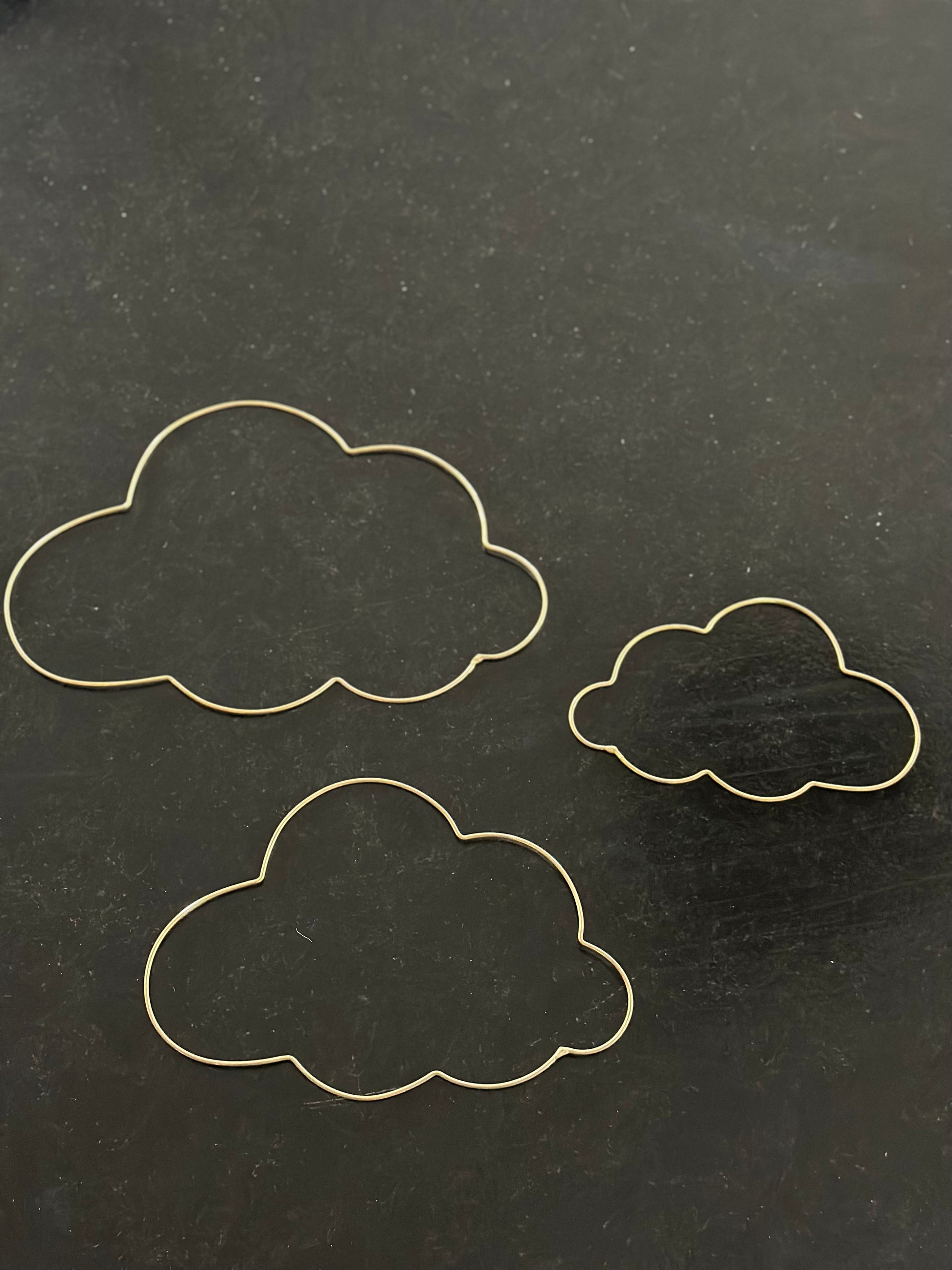 Nuage stylisé réalisé en fil de laiton. Existe en 3 tailles. S : 15cm - M : 20cm - L : 24cm