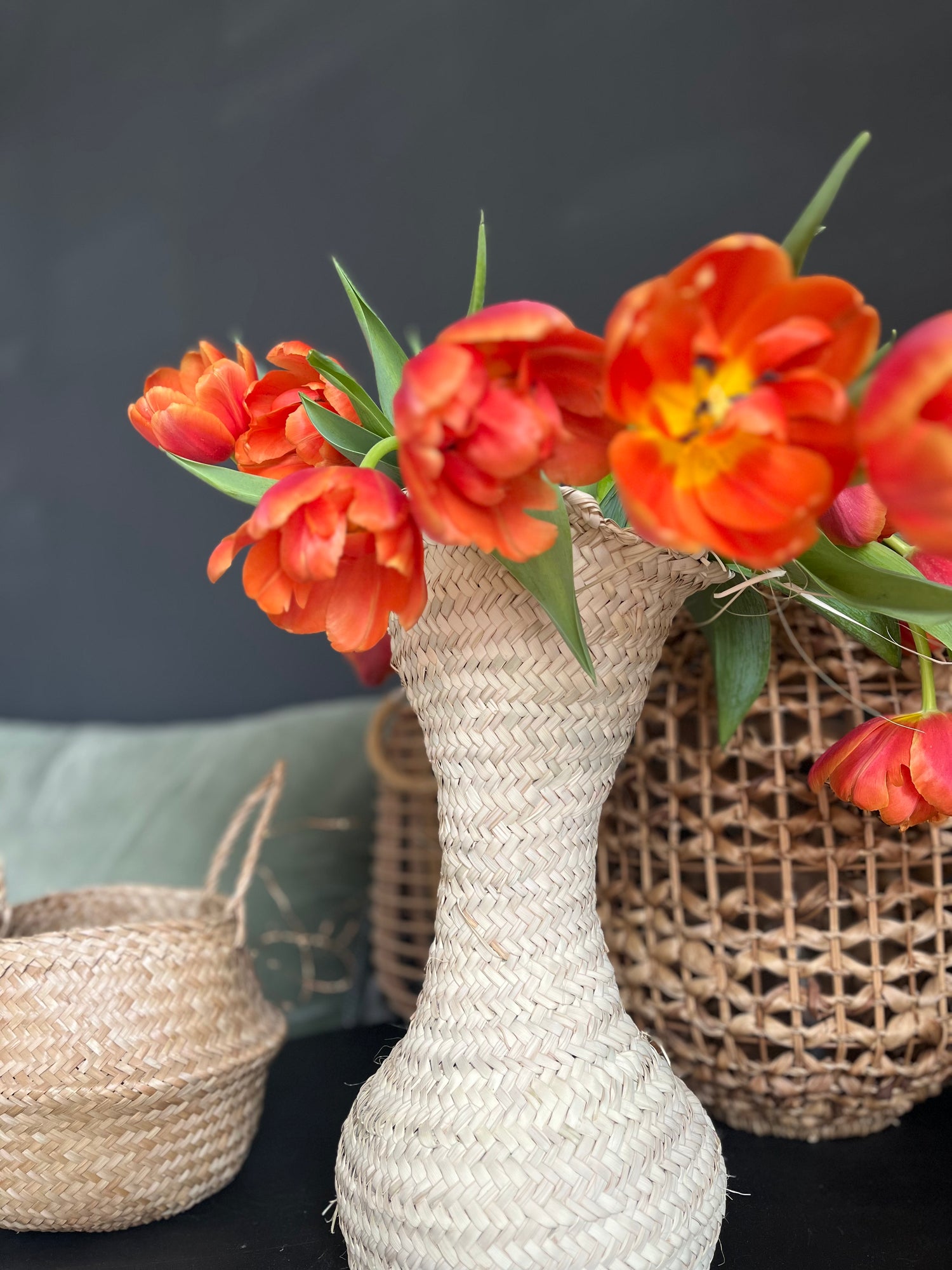 Idéal pour accueillir vos bouquets de fleurs séchées, il vous suffit de glisser à l'intérieur du vase un grand verre d'eau et le tour est joué : vous pouvez y glisser vos jolies tulipes ou mes préférées, les premières pivoines de l'année !